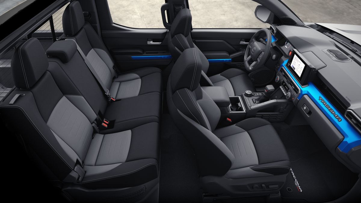 - Fabric-trimmed seats; 6-way manually adjustable driver and front passenger seats with 2-way power-adjustable lumbar support on driver's seat only