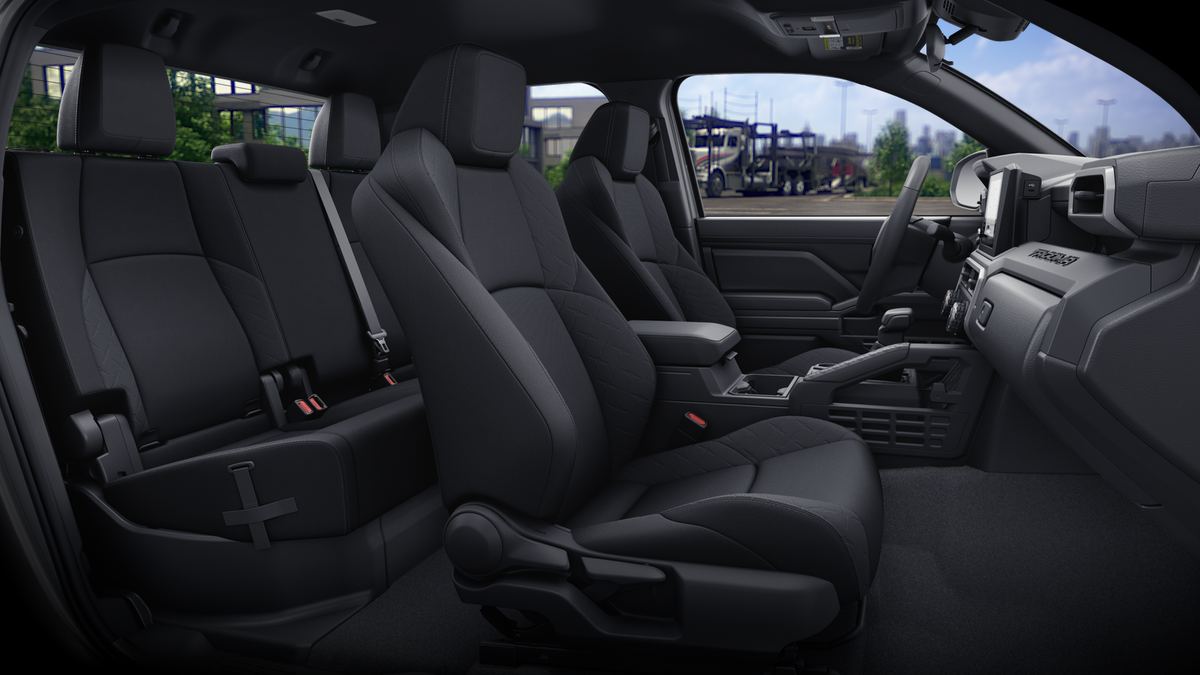 - Fabric-trimmed seats; 6-way manually adjustable driver and front passenger seats with 2-way power-adjustable lumbar support on driver's seat only