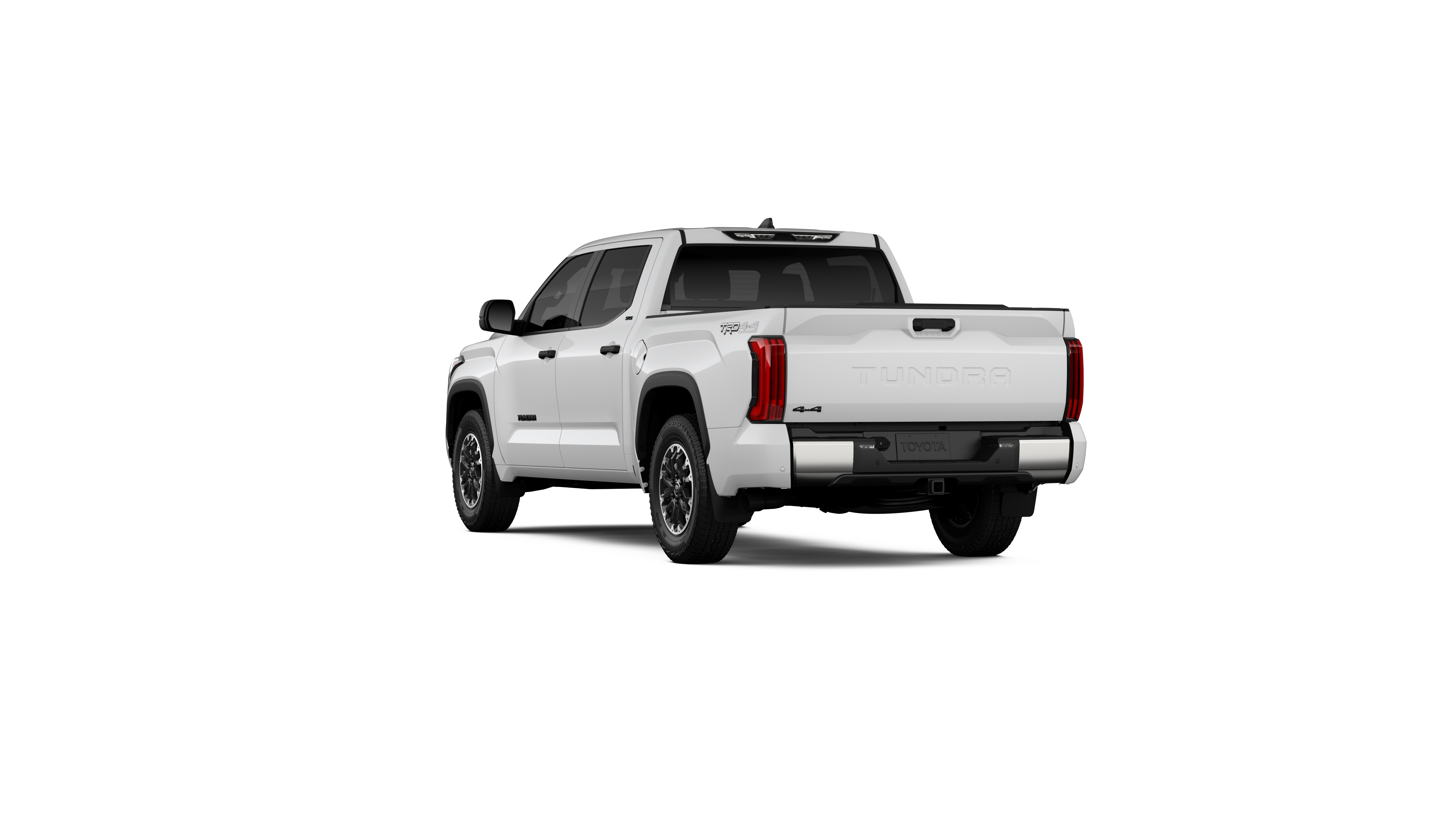 - Chrome "TUNDRA" and "SR5" door badges; black door handles, window molding, mirror caps, tailgate spoiler and overfenders