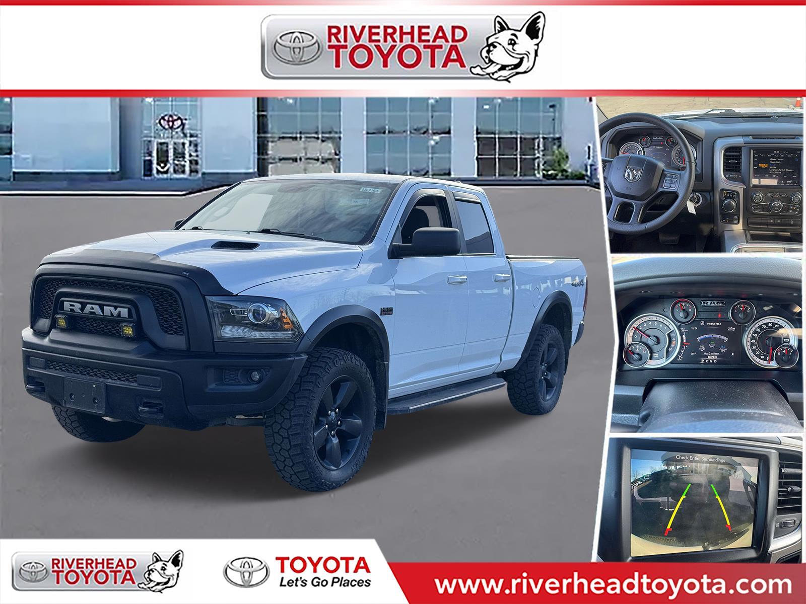 Vehicle Features include:, 1-Yr SiriusXM Guardian Trial, 4x4 Decal, 4x4 Flat Black Badge, 8.4' Touchscreen Display, Air Conditioning ATC w/Dual Zone Control, Apple CarPlay, Bi-Function Halogen Projector Headlamps, Black Exterior Truck Badging, Black Grille w/RAM Lettering, Black Headlamp Bezels, Black Headlamp Filler Panel, Black Powder Coated Front Bumper, Black Powder Coated Rear Bumper, Black RAM Head Tailgate Badge, Black Wheel Flares, Cluster 7.0' TFT Color Display, Dual Rear Exhaust w/Bright Tips, Electronics Group, Front LED Fog Lamps, Front Wheel Well Liners, Google Android Auto, GPS Antenna Input, HD Radio, Hood Decal, Humidity Sensor, Integrated Voice Command w/Bluetooth, Media Hub (2 USB, AUX), ParkSense Rear Park Assist System, Quick Order Package 27F Warlock, Radio: Uconnect 4C w/8.4' Display, Rear Extra HD Shock Absorbers, Rear Floor Mats, Semi-Gloss Black Hub, SiriusXM Satellite Radio, Sport Tail Lamps, Tow Hooks, USB Host Flip, Wheels: 20' x 8' Semi-Gloss Black Aluminum. Clean CARFAX.