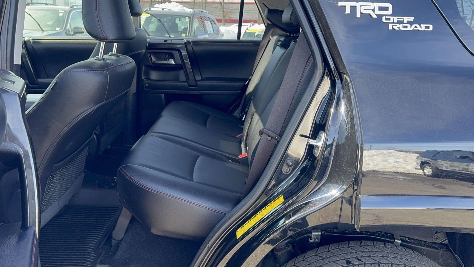 Clean CARFAX. CARFAX One-Owner. Certified. 2023 Toyota 4Runner TRD Off-Road Premium Black 4WD Toyota Certified, Clean Carfax Vehicle History, Carfax One Owner, GPS Navigation w/ Backup Camera, Sunroof / Moonroof, Bluetooth, Hands-Free, USB / AUX Inputs to play music, Leather Seats, Heated Front Seats, Premium 18" Wheels, 4WD, Graphite Artificial Leather, Moonroof Package, Off Road Package, Off Road Premium Plus Package.